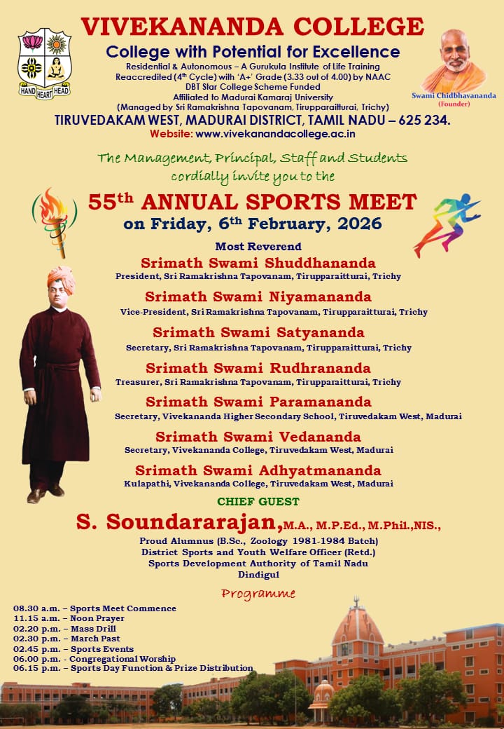 Copyright © 2010 All Rights Reserved Vivekananda College, Tiruvedakam West, Madurai.