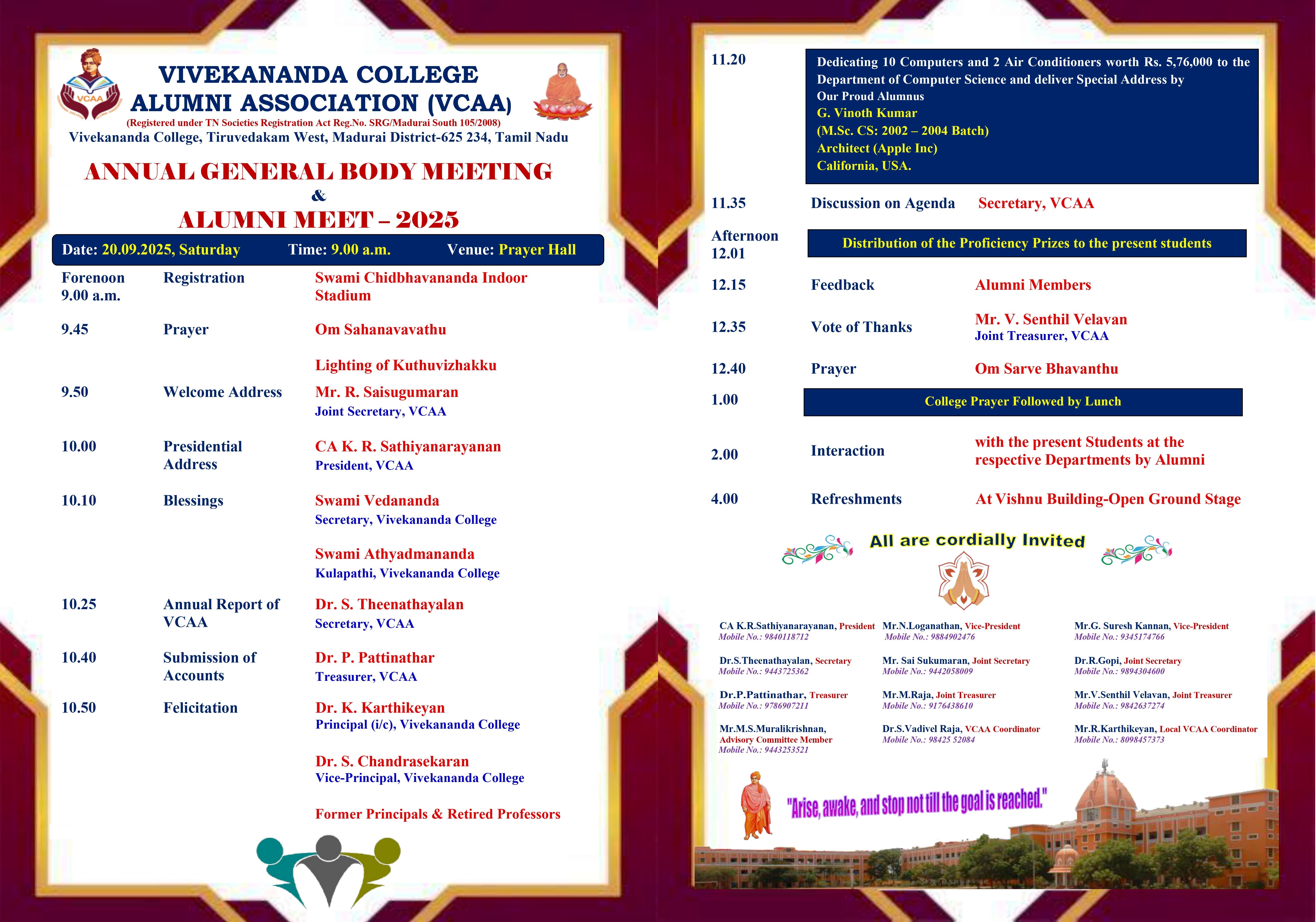 +914543-258234, +917540060257, principal@vivekanandacollege.org / principal@vivekanandacollege.ac.in