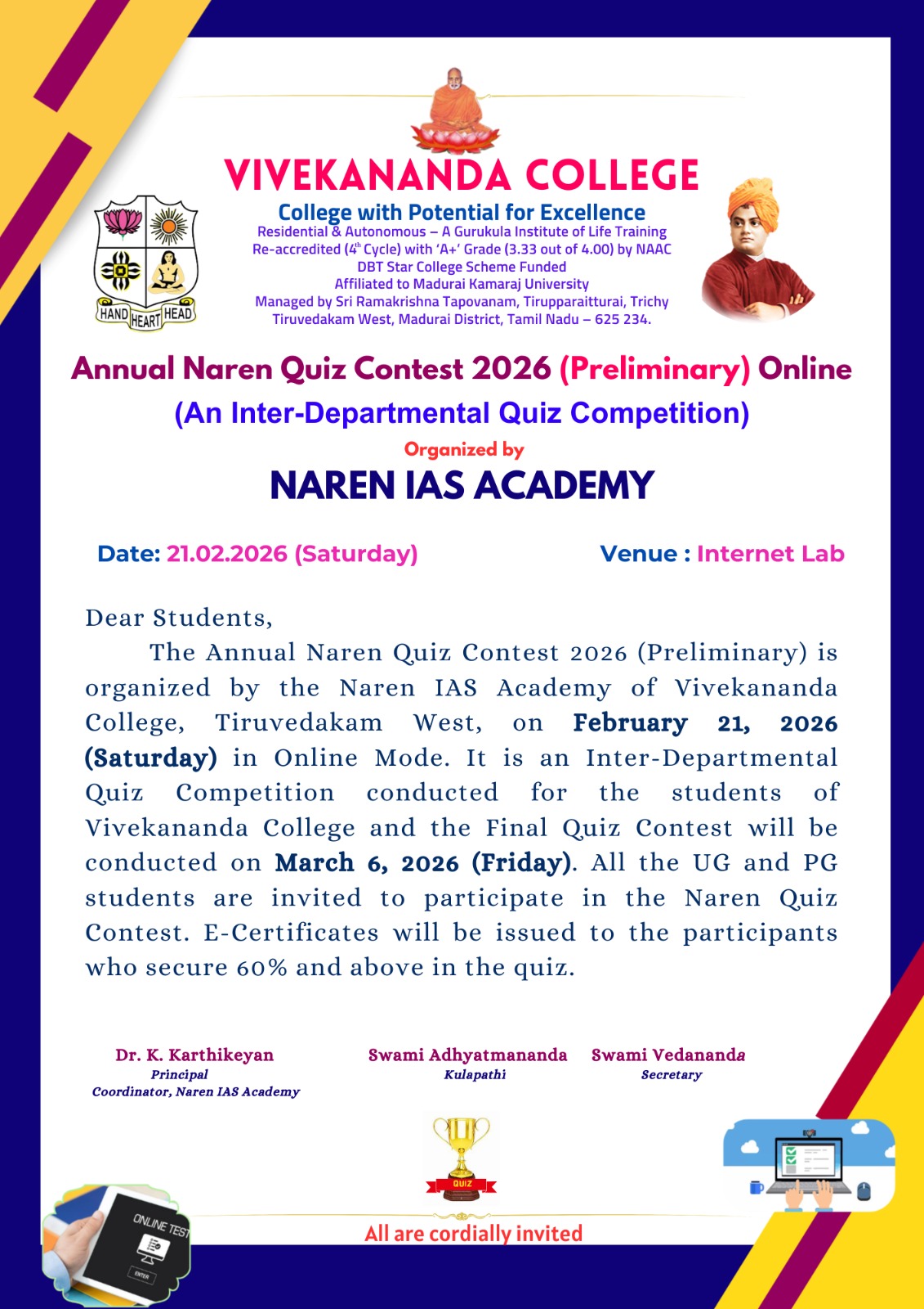Annual Naren Quiz Contest 2026 (Preliminary) Online – An Inter-Departmental Quiz Competition