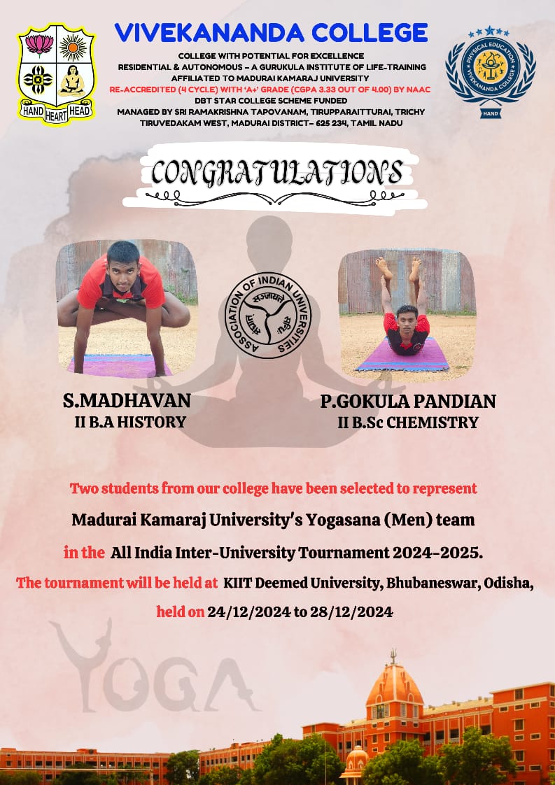 Copyright © 2010 All Rights Reserved Vivekananda College, Tiruvedakam West, Madurai.