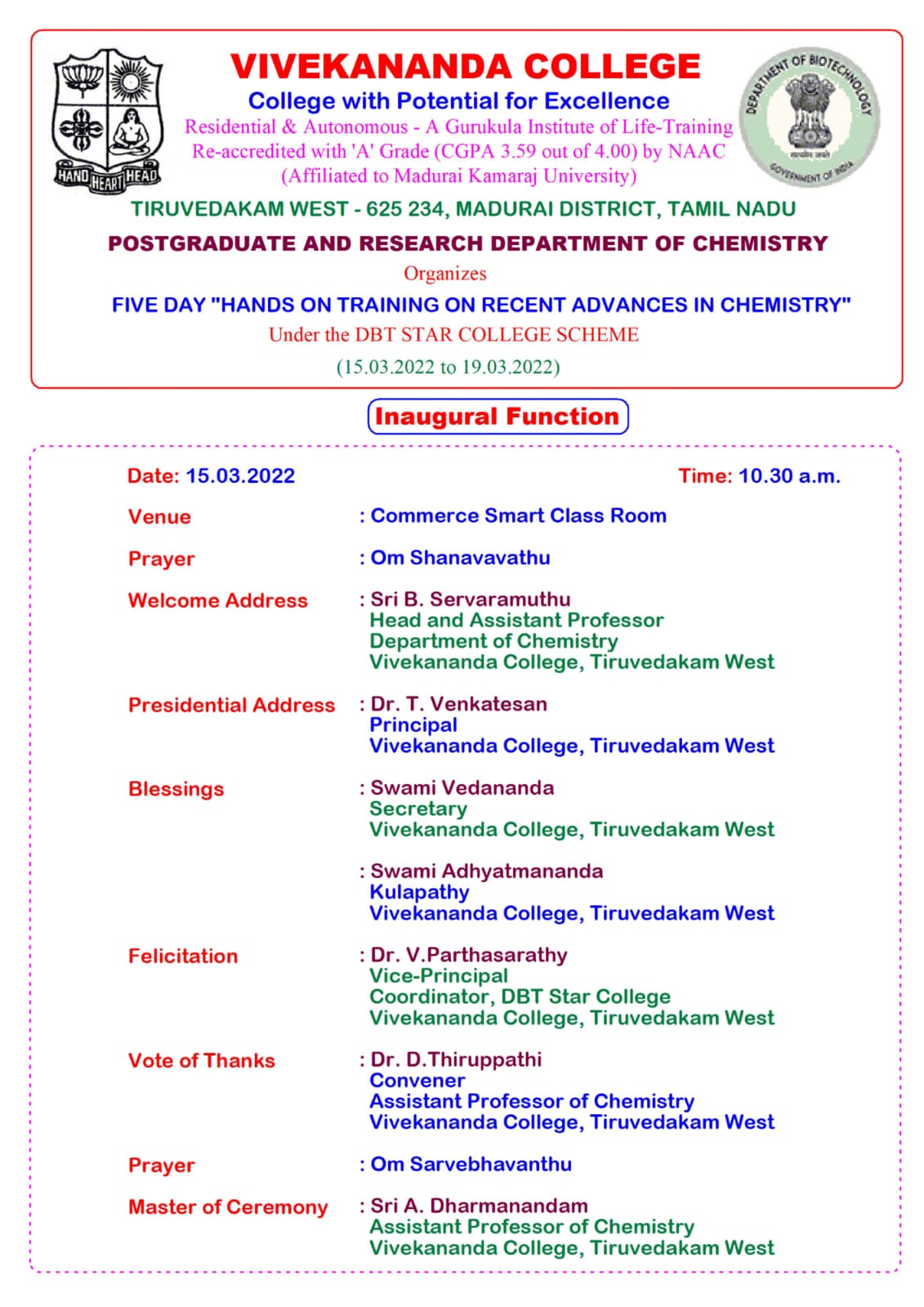Vivekananda College Tiruvedakam West, Madurai District – 625 234