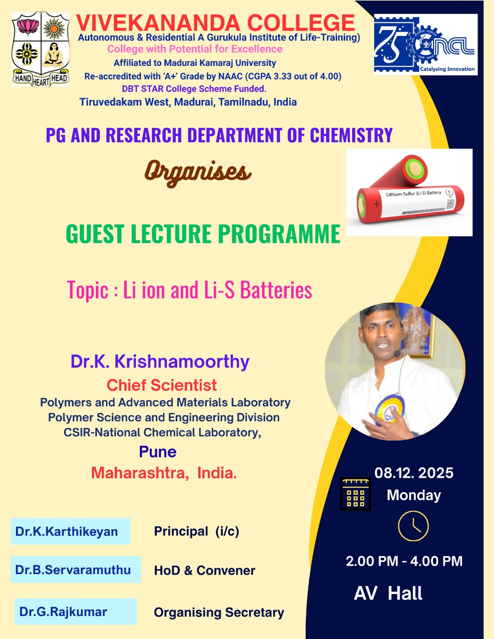 Guest Lecture Programme on “Li ion and Li-S Batteries” – PG and Research Department of Chemistry