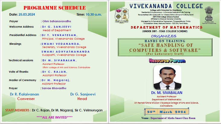 Hands on Training “Safe Handling of Computer and Softwares”