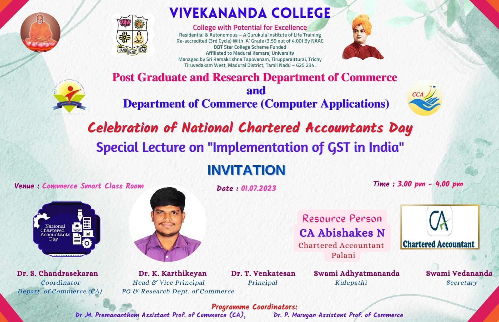 +914543-258234, +917540060257, principal@vivekanandacollege.org / principal@vivekanandacollege.ac.in