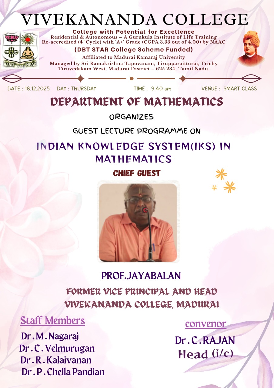 Copyright © 2010 All Rights Reserved Vivekananda College, Tiruvedakam West, Madurai.