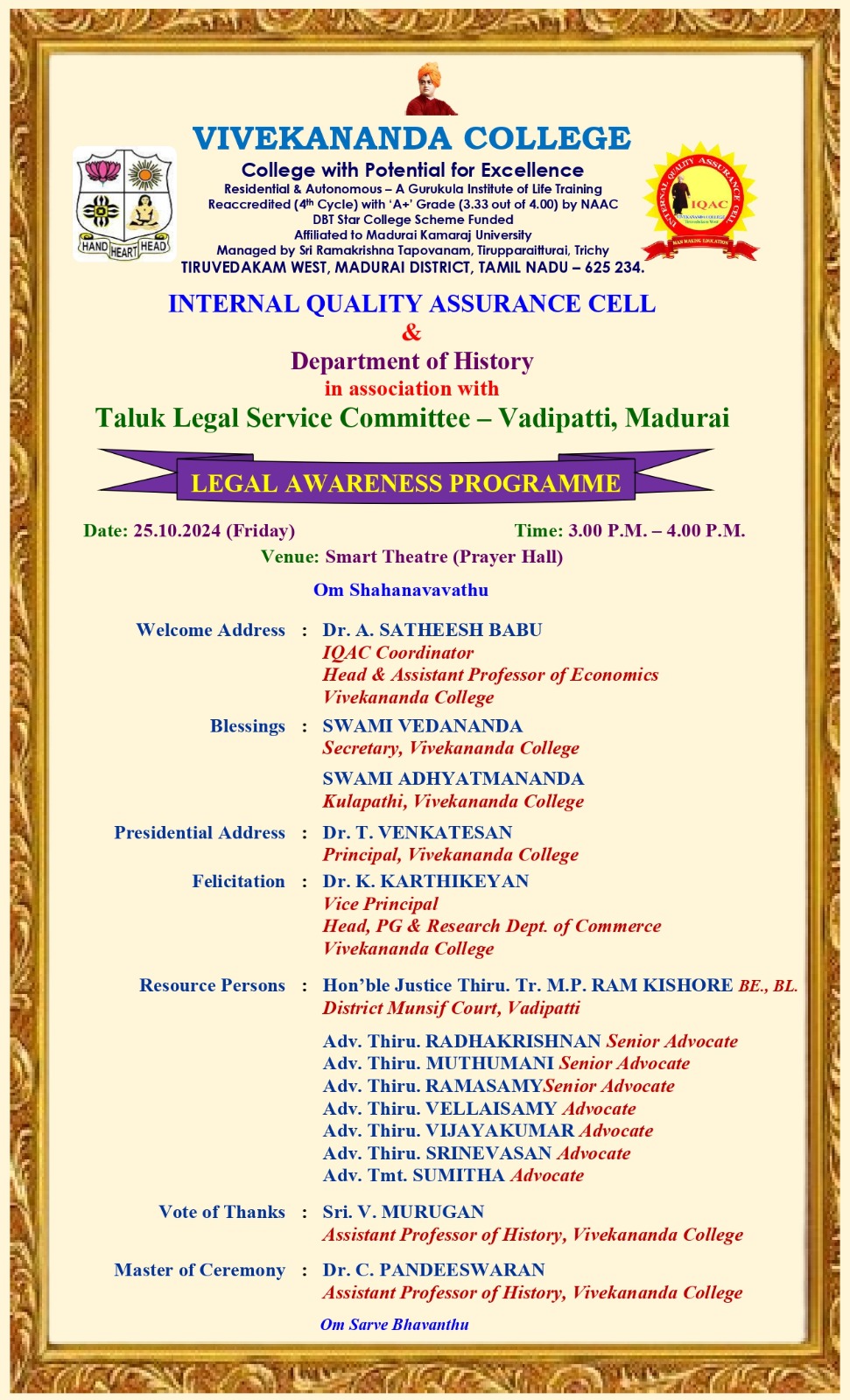 Copyright © 2010 All Rights Reserved Vivekananda College, Tiruvedakam West, Madurai.