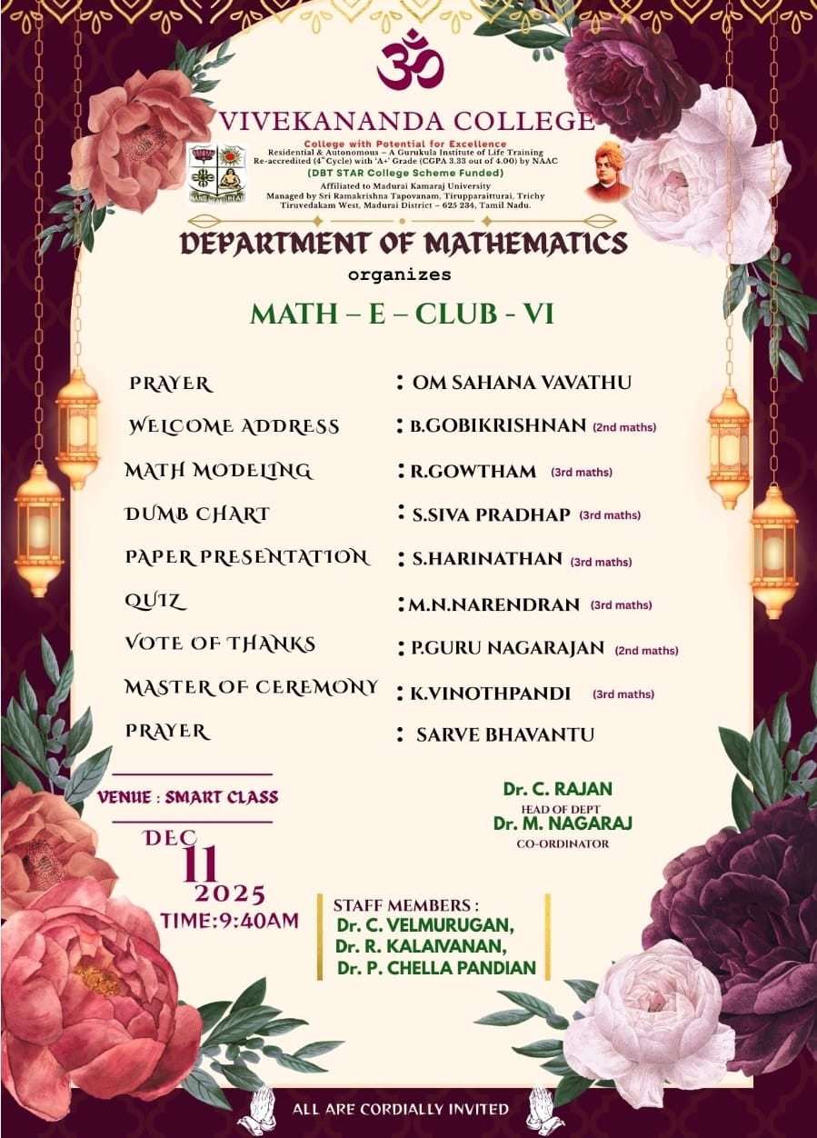 Copyright © 2010 All Rights Reserved Vivekananda College, Tiruvedakam West, Madurai.