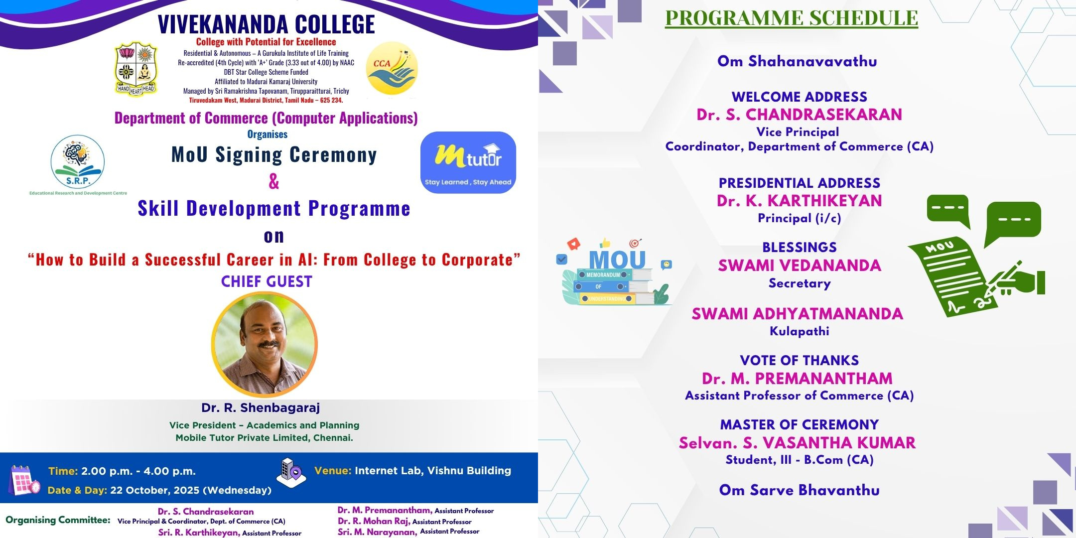 MoU Signing Ceremony & Skill Development Programme on “How to Build a Successful Career in AI: From College to Corporate”