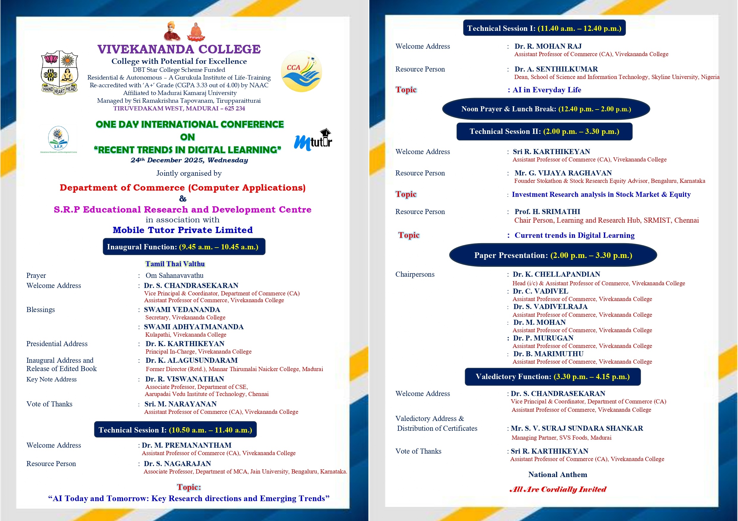 One Day International Conference on “Recent Trends in Digital Learning” – Department of Commerce (CA)