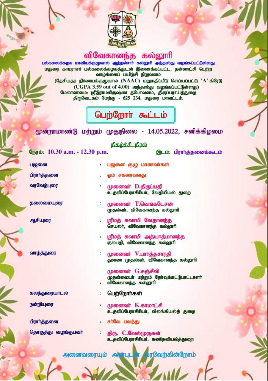 Copyright © 2010 All Rights Reserved Vivekananda College, Tiruvedakam West, Madurai.