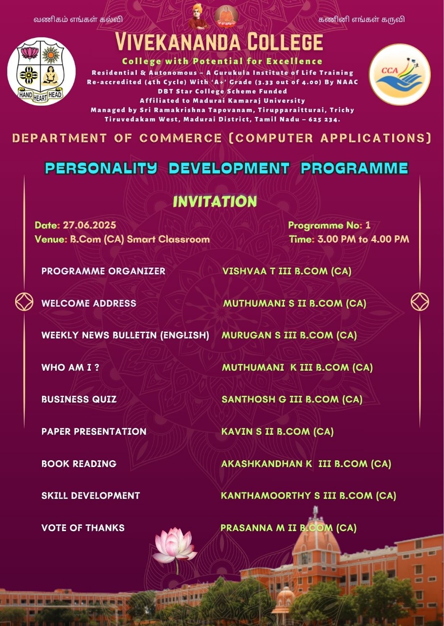 Copyright © 2010 All Rights Reserved Vivekananda College, Tiruvedakam West, Madurai.