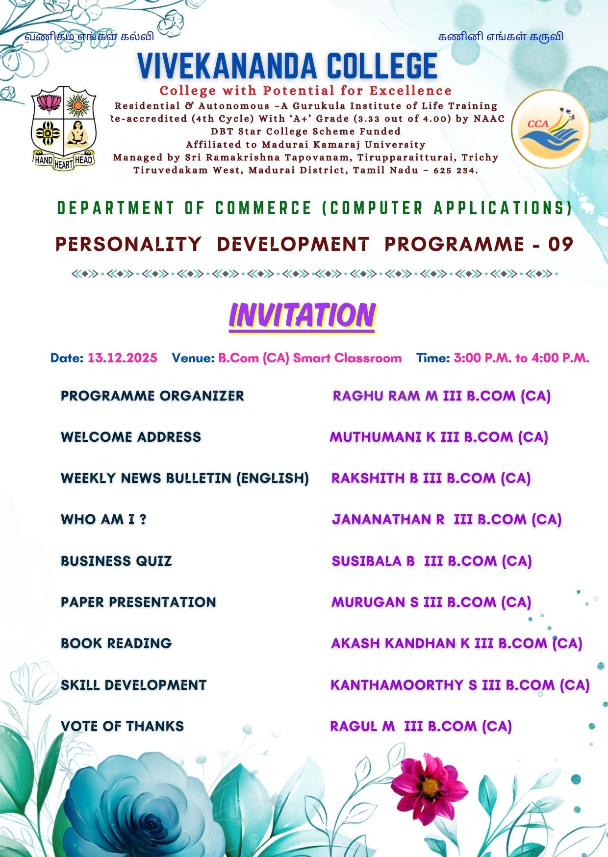 Personality Development Programme – Department of Commerce (CA)