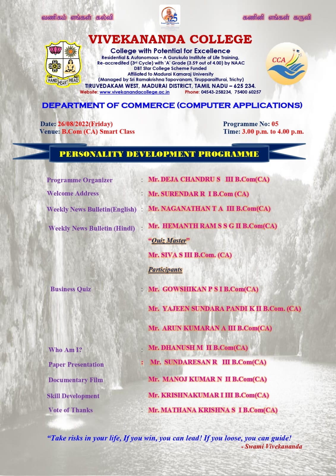 Copyright © 2010 All Rights Reserved Vivekananda College, Tiruvedakam West, Madurai.