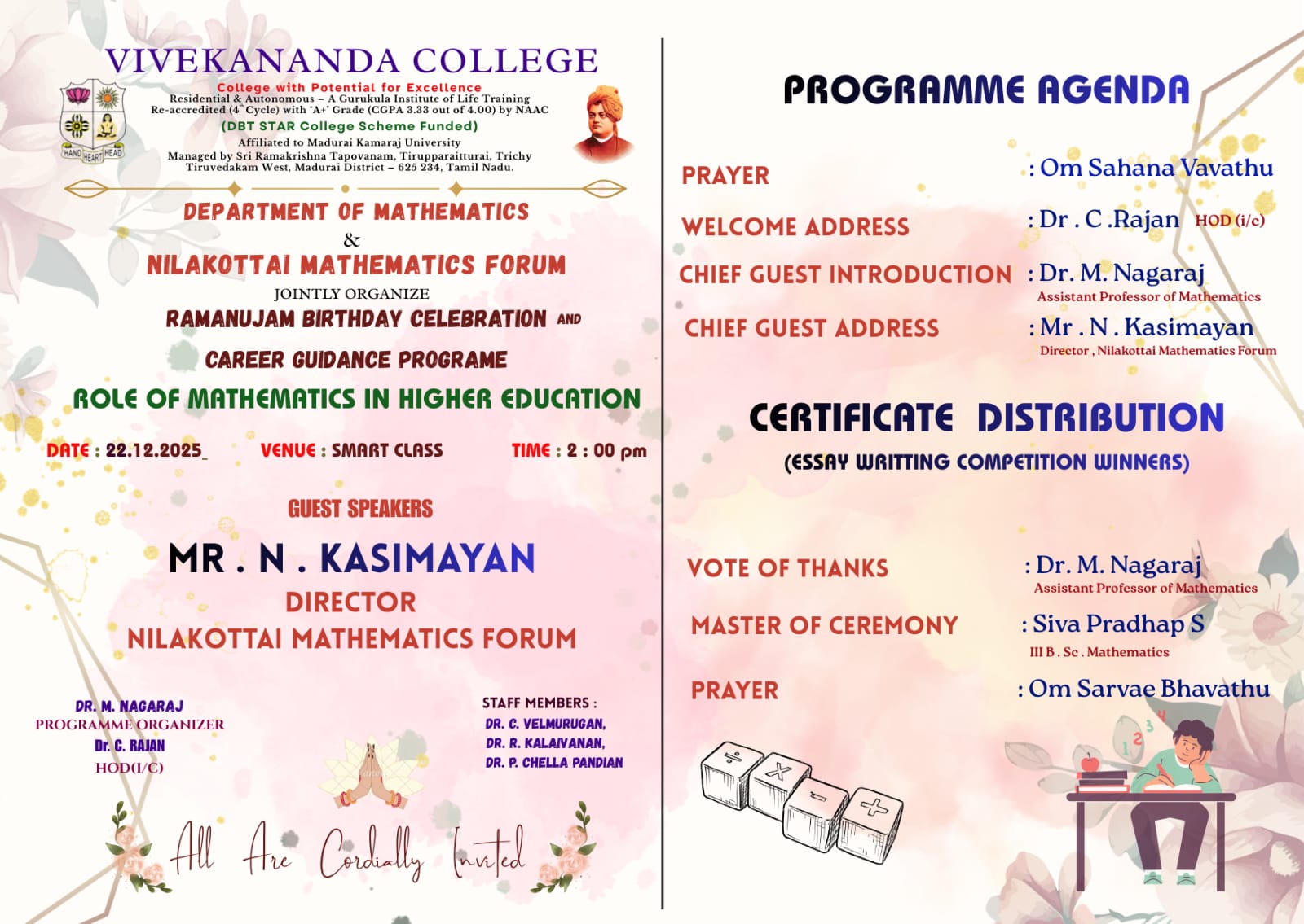 +914543-258234, +917540060257, principal@vivekanandacollege.org / principal@vivekanandacollege.ac.in