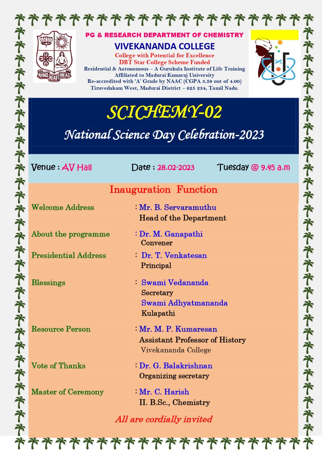 Copyright © 2010 All Rights Reserved Vivekananda College, Tiruvedakam West, Madurai.