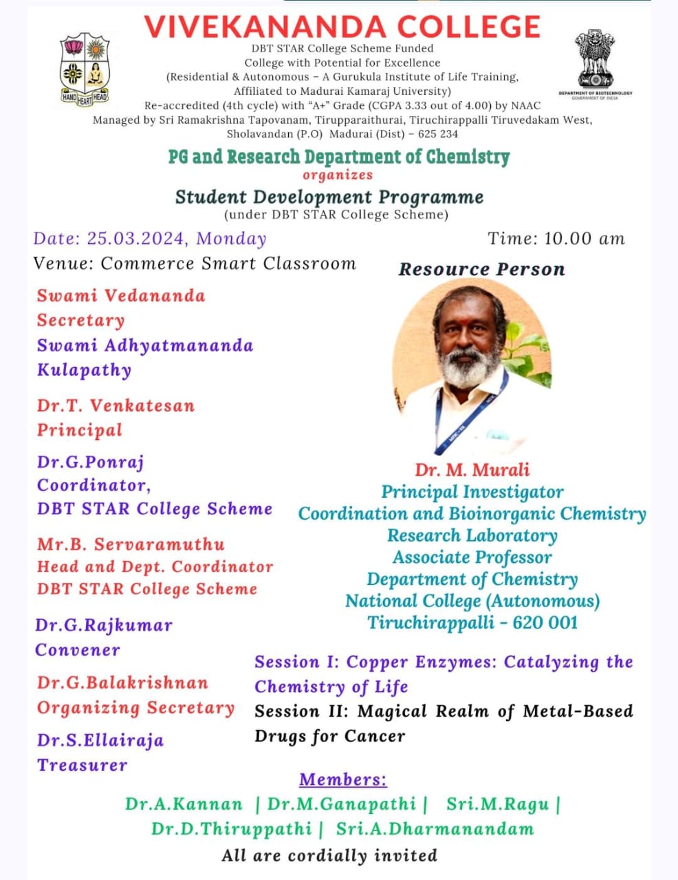 Vivekananda College Tiruvedakam West, Madurai District – 625 234