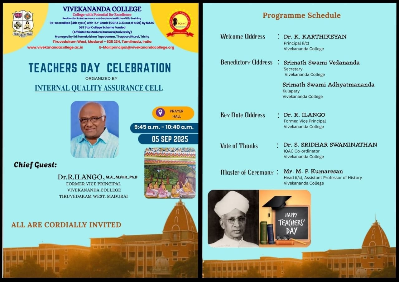 Copyright © 2010 All Rights Reserved Vivekananda College, Tiruvedakam West, Madurai.