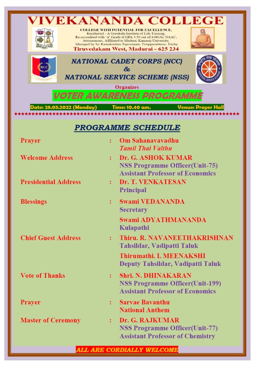 Vote Awareness Programme – NCC – NSS