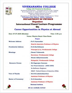 International Guest Lecture Programme on “Career Opportunities in Physics at Abroad””