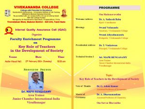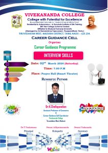 Warm Greetings from Faculty and students of Department of Computer Science, Vivekananda College, Tiruvedakam West, Madurai….!!!! We the Department of Computer Science, Vivekananda College, Madurai is organizing a State Level Inter-collegiate Meet - GANANITHANTRA 2024 for undergraduate students of CS / IT /AI/DA/ BCA / CS & IT / Com (CA) on 23 February 2024 Friday. Kindly encourage your students to participate and win attractive prizes and overall championship. We also thank your team for giving the fullest support in…